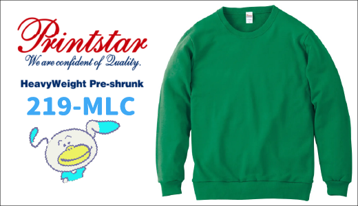 家族でもクラスでもそろえやすい!Printstarの8.4ozクルーネックライトトレーナー〈219-MLC〉をしーぼーくんが紹介。