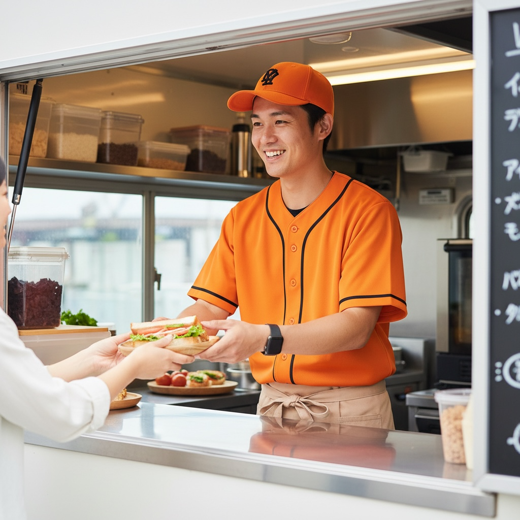 目立つからお客様にわかってもらえるし、ドライ生地は軽くて乾きやすいから長時間でも快適。